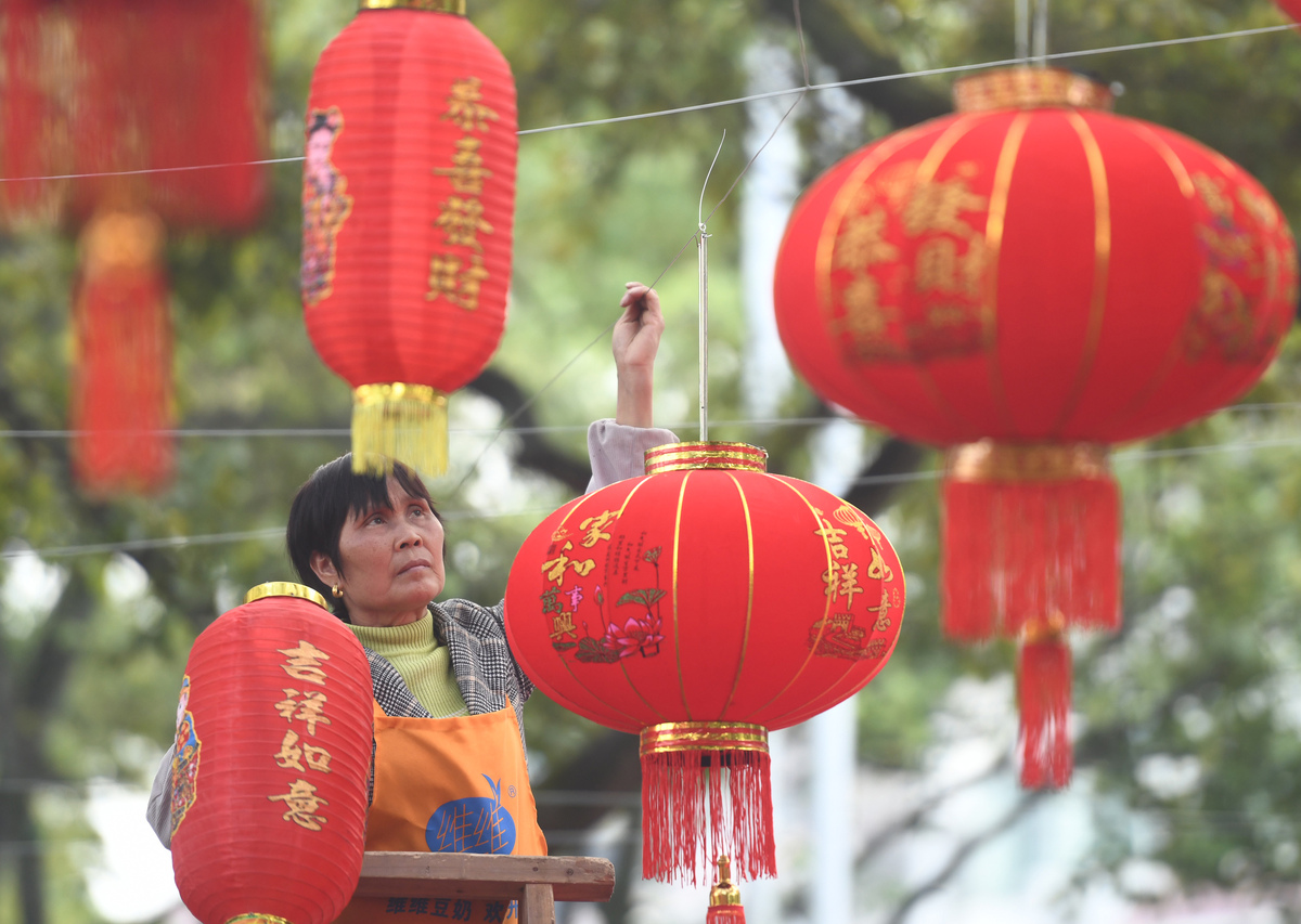 贴春联挂灯笼 红红火火迎新年 - 湖北日报新闻客户端
