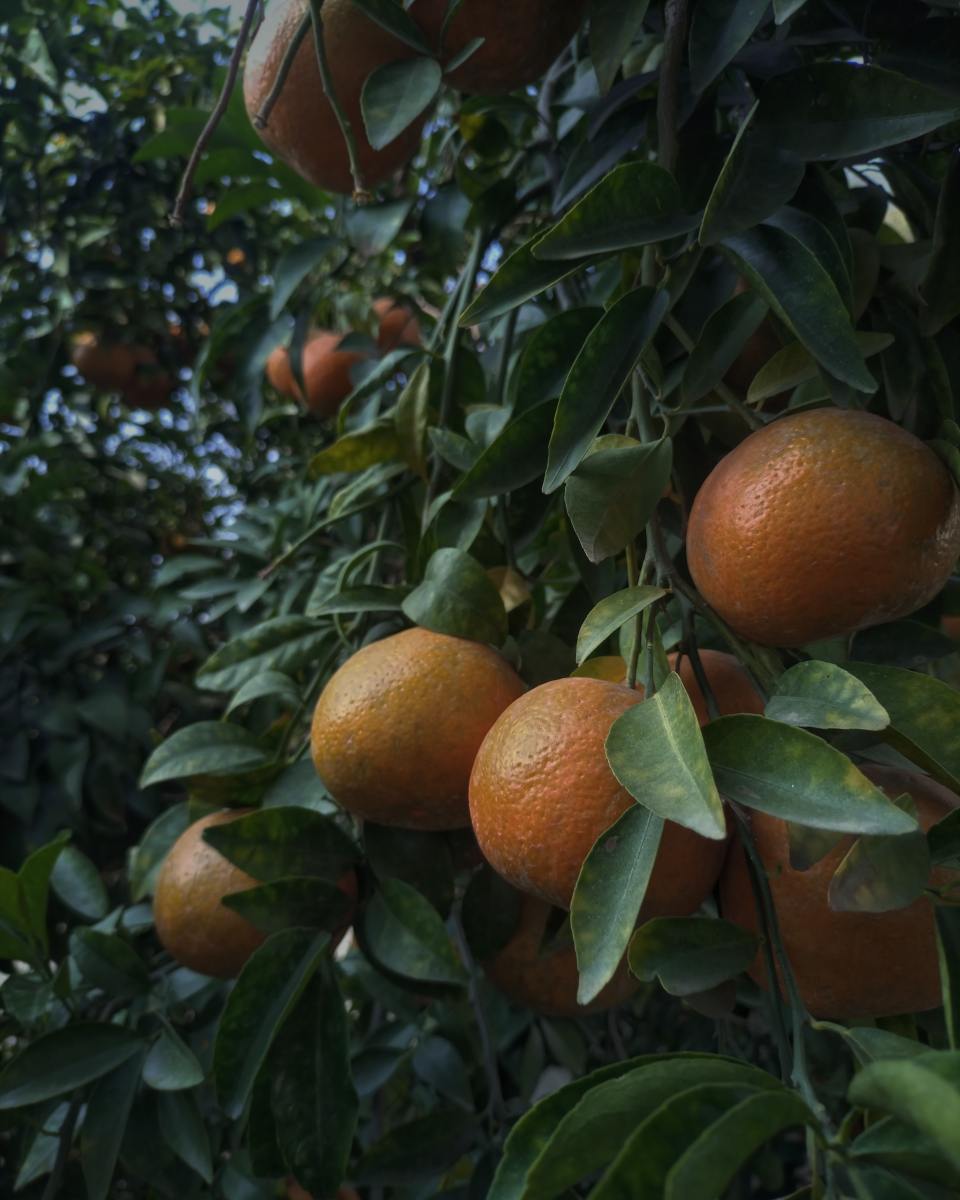 在乡野漫步,天空被云朵晕染,阳光挣扎着透出微光,柑橘树挂满青 - 抖音