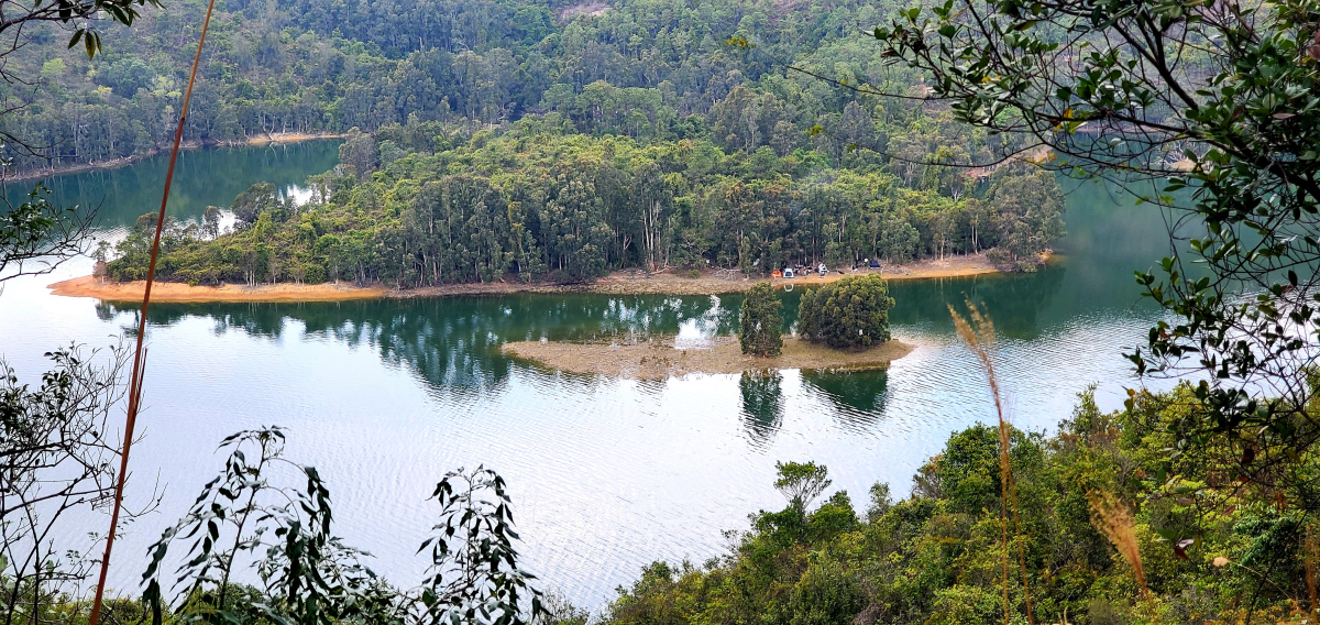 重庆万盛青山湖国家湿地公园子母楼远眺