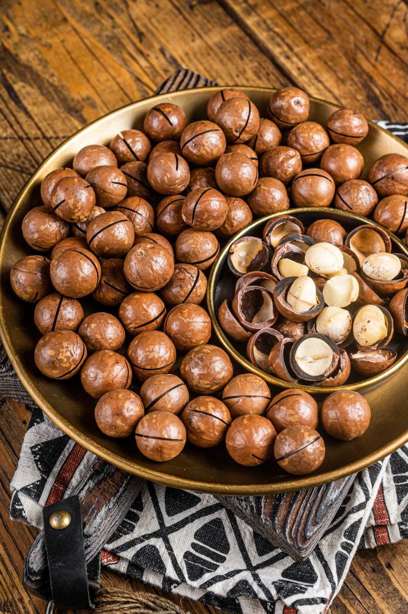 一盘夏威夷果摆放在桌面上特写_站酷海洛_正版图片_视频_字体_音乐